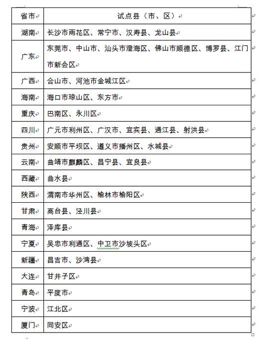 據(jù)農(nóng)業(yè)部消息,為貫徹落實(shí)《中共中央國務(wù)院關(guān)于穩(wěn)步推進(jìn)農(nóng)村集體產(chǎn)權(quán)制度改革的意見》精神,由點(diǎn)及面開展集體經(jīng)營性資產(chǎn)產(chǎn)權(quán)制度改革,經(jīng)各省、自治區(qū)、直轄市及計(jì)劃單列市推薦,農(nóng)業(yè)部、中央農(nóng)辦確定北京市海淀區(qū)等100個(gè)縣(市、區(qū))為2017年度農(nóng)村集體產(chǎn)權(quán)制度改革試點(diǎn)單位。西藏自治區(qū)曲水縣、新疆維吾爾自治區(qū)沙灣縣作為2015年確定的農(nóng)村集體資產(chǎn)股份權(quán)能改革試點(diǎn)縣,在完成好原有試點(diǎn)任務(wù)的基礎(chǔ)上,承擔(dān)新一輪改革試點(diǎn)任務(wù)。所有試點(diǎn)單位的試點(diǎn)時(shí)間到2018年底結(jié)束。