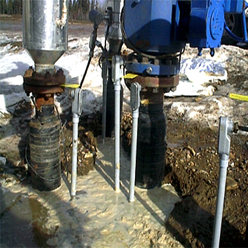 4.陽極網(wǎng)安裝完并逐項(xiàng)檢查無誤后,進(jìn)行基礎(chǔ)回填;靥顣r先人工在陽極帶上鋪撒一層細(xì)砂土,然后在從外向里,由近及遠(yuǎn)進(jìn)行回填,防止機(jī)械直接輾壓陽極網(wǎng),破壞陽極表面的混合金屬氧化膜、損壞電纜。 |